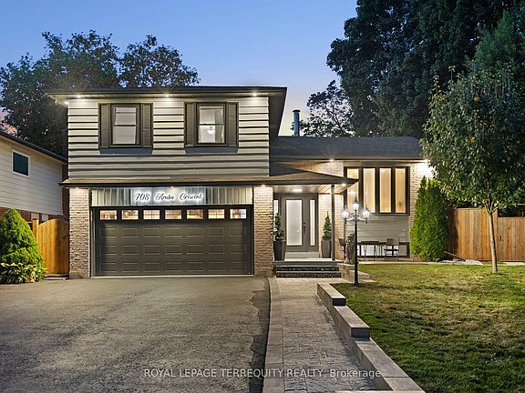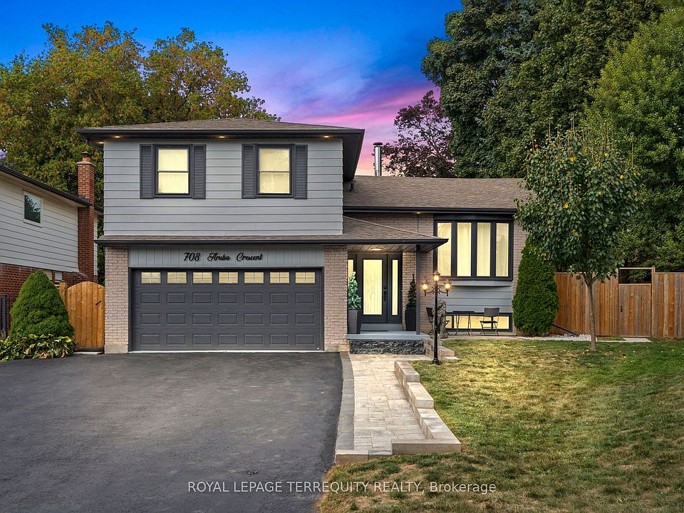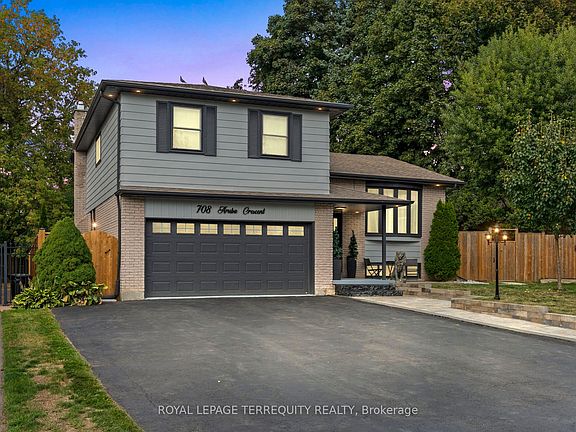 Welcome to 708 Aruba Crescent, nestled in Oshawas highly sought-after Northglen community! This beautifully updated 3+1 bedroom, 3 bathroom home is perfectly located just minutes to schools, parks, transit, and the Oshawa Centre. Step inside to find a bright and modern interior with engineered hardwood and vinyl flooring throughout no carpet! The home boasts updated light fixtures, renovated bathrooms, and an upgraded staircase that add a stylish touch. The open-concept kitchen features stainless steel appliances, quartz counters on the island, a breakfast bar, and an eat-in area with walkouts to your backyard oasis. Enjoy a large pie-shaped lot with mature trees, modern interlocking, a two-level deck, and no sidewalk perfect for entertaining or family fun. The driveway offers parking for up to 8 vehicles plus garage access. Upstairs, the primary bedroom retreat includes a feature accent wall, walk-in closet, and a spa-like 4-piece ensuite. The fully finished basement extends your living space with a rec room, wet bar, additional bedroom, and plenty of storage. With over 2,200 sq. ft. of total living space, 2 walkouts to the backyard, exterior pot lights, and numerous recent upgrades, this home truly has it all. Dont miss your chance to own this perfect family home in one of Oshawas most desirable neighborhoods!