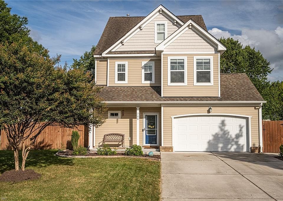 Well-maintained 4 bedroom, 2.5 bath home in Virginia Beach, tucked away on a quiet cul-de-sac with a fenced corner lot. Step inside to bright living spaces, high ceilings on both levels, and updated modern fixtures. The kitchen offers granite countertops, stainless steel appliances, pendant lighting, and bar seating. Gather by the cozy fireplace or entertain outdoors on the deck overlooking the private backyard. The primary bedroom boasts a walk-in closet, spacious layout, and a bath with an elegant shower and tub. A spacious two-car garage adds convenience and extra storage. Just minutes from beaches, military bases, shopping, and dining, with quick interstate access for an easy commute.