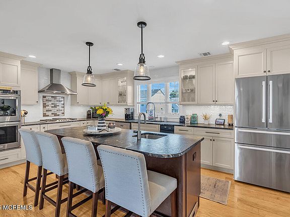 Stunning, one-of-a-kind custom-built home offers a unique reverse living experience with breathtaking panoramic views of NYC & Raritan Bay. This 4-bedroom, 2½ bath house maximizes outdoor and indoor enjoyment, complete w/elevator for easy access. The open floor plan on upper level features a gourmet kitchen with a leather granite island. It seamlessly connects to a huge great room w/gas fireplace that leads to a magnificent, covered porch-perfect for morning coffee or evening cocktails at sunset! The Primary Bedroom Suite has spectacular water views, a luxurious bathroom with double sinks, & walk-in closet. Short walk to tiki bar & waterfront. Convenient commuting to NYC via bus, train or boat! This exceptional home combines modern convenience with natural beauty, making it a true retreat