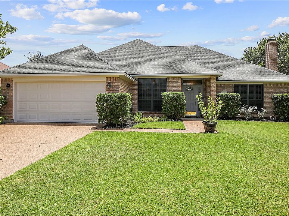 Such a great location. One end of Brussels St. is a cul-de-sac the other end is a park. Surrounded by schools and easy access to TAMU and Hwy. 6. You could be the 3rd owner of this 4 bed 2 bath home. Both owners have kept it updated and maintained to a high level. Fresh exterior paint and roof in July 2025 plus extended concrete outdoor patio was added in ~2021. The home backs to a green belt so no backyard neighbors. Kitchen has been updated with granite countertops and stainless applianced including a Bosch dishwasher it has great storage and counter space plus an island. The living room features a tray ceiling, plantation shutters and a fireplace. There’s one bedroom on the front of the house (currently being used as an office), 2 on the side and the primary suite is on the back. All hard surface floors! The primary suite includes plantation shutters, a garden tub, separate shower and large walk-in closet. The backyard has a covered patio off the breakfast room plus the extended patio that wraps around the back of the house. This house has so much to offer!