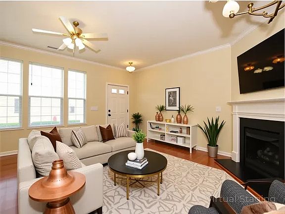 Crown moldingsCeiling fansCorner gas fpBrushed nickel fixturesSolid surface countertopsWalk in closetsStainless appliances in kitchen