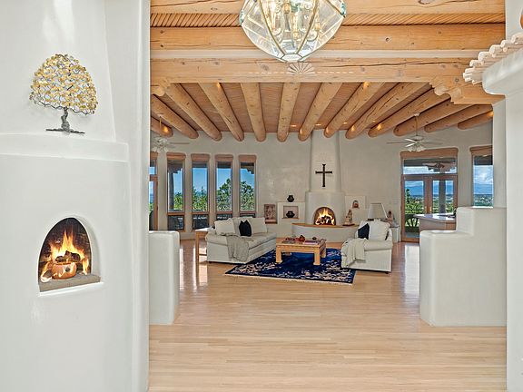Small kiva fireplaceOutdoor fireplacePueblo-style propertyPrivate covered patioGourmet kitchenExpansive sized great roomPanoramic views