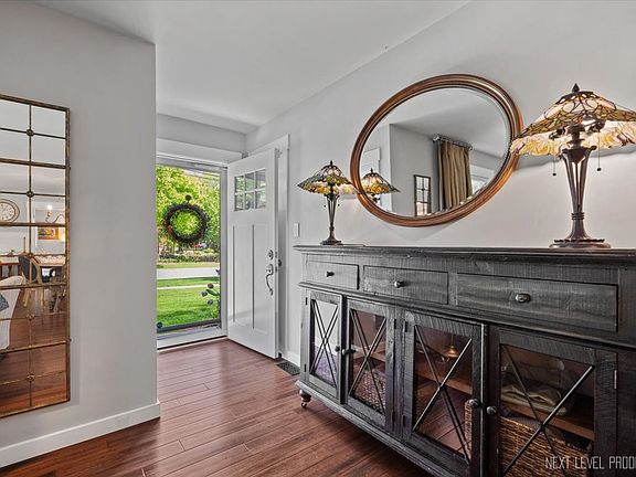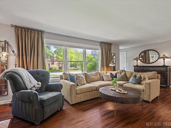 Completely rehabbed and redesigned with a stunning open floor plan, this in-town Geneva ranch is a true gem! Ideally located just three blocks from Geneva High School and walkable to charming downtown Geneva, this beautifully updated 3-bedroom, 2-bath home sits on an oversized corner lot surrounded by mature trees, lush landscaping, and an English garden-inspired setting. Step inside to find hand-scraped hardwood floors throughout the main level (excluding bathrooms), a spacious living room with a large picture window, and a masonry fireplace with a custom carved wood mantle. The stunning kitchen is the heart of the home, featuring custom cabinetry, granite countertops, stainless steel appliances, floating shelves, and a large island with breakfast bar-perfect for entertaining. The adjacent dining room boasts elegant custom wainscoting for added character. Enjoy the sunroom as a versatile space-ideal as a playroom, office, library, or reading nook. The primary suite offers a peaceful retreat with access to the backyard through a patio door, a walk-in closet, beautiful built-in storage, and a luxurious en-suite bath with high-end finishes. Two additional generously sized bedrooms share a stylishly updated hall bath with dual sinks. The large semi-finished basement offers built-in cabinetry and shelving-perfect for a rec room, office, hobby space, or storage. Additional features include main floor laundry and an attached, heated 2-car garage. Don't miss this rare opportunity to own a fully updated home in a prime Geneva location!