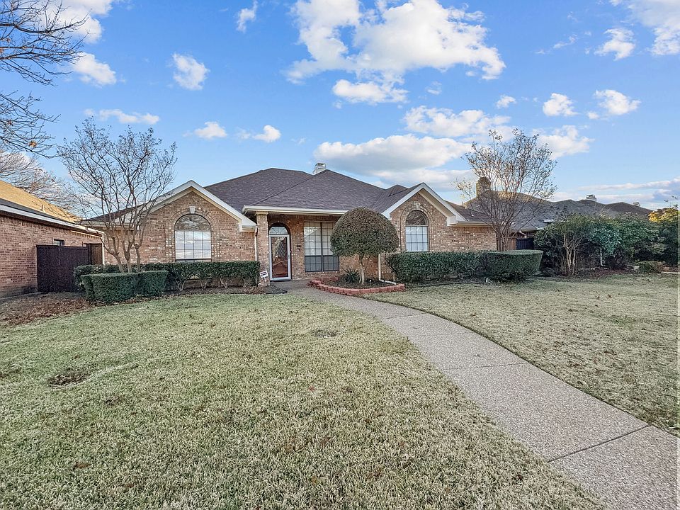 This beautifully maintained and updated single-story, North-facing 4-bedroom, 3-bath home is located in the heart of Irving's sought-after Valley Ranch neighborhood and is zoned for the highly acclaimed Coppell ISD. The home features stunning wood flooring throughout, granite countertops, stainless steel appliances, a gas cooktop vented out for convenience, and fresh paint that enhances its modern appeal. Each room is spacious with walk-in closets, complemented by ample storage cabinets throughout the house. A welcoming porch at the entrance offers the perfect spot to relax, while the abundance of natural sunlight keeps the interior bright and inviting. The property also includes a charming front yard and a private backyard ideal for enjoying evenings outdoors. Refrigerator, washer, and dryer are included for added convenience. Located close to major highways, retail shops, restaurants, and grocery stores, this home combines comfort, style, and accessibility for an unmatched living experience.