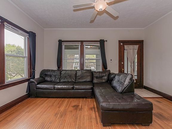 Terrific location, Older charm Bungalow with 5 bedrooms and 3 full baths. Family Room with many windows open to large Dining Room . Kitchen with appliances remaining, oak hardwood floors. Roof new in 2008. Garage door new in July 2009. Nice spacious floor plan. Bedrooms with Bed frames and Dressers. Large fenced backyard and 2 car detached garage. Other room 1 - nice size front porch with windows and swing. All windows replaced in 2011. Air conditioner and hot water heater in 2011. replaced kitchen floor. Bathroom in basement redone with tile floor, tile shower & vanity. Two car detached garage. Close to ISU and Oakdale School. Great opportunity for a rental property!! Definitely must see!