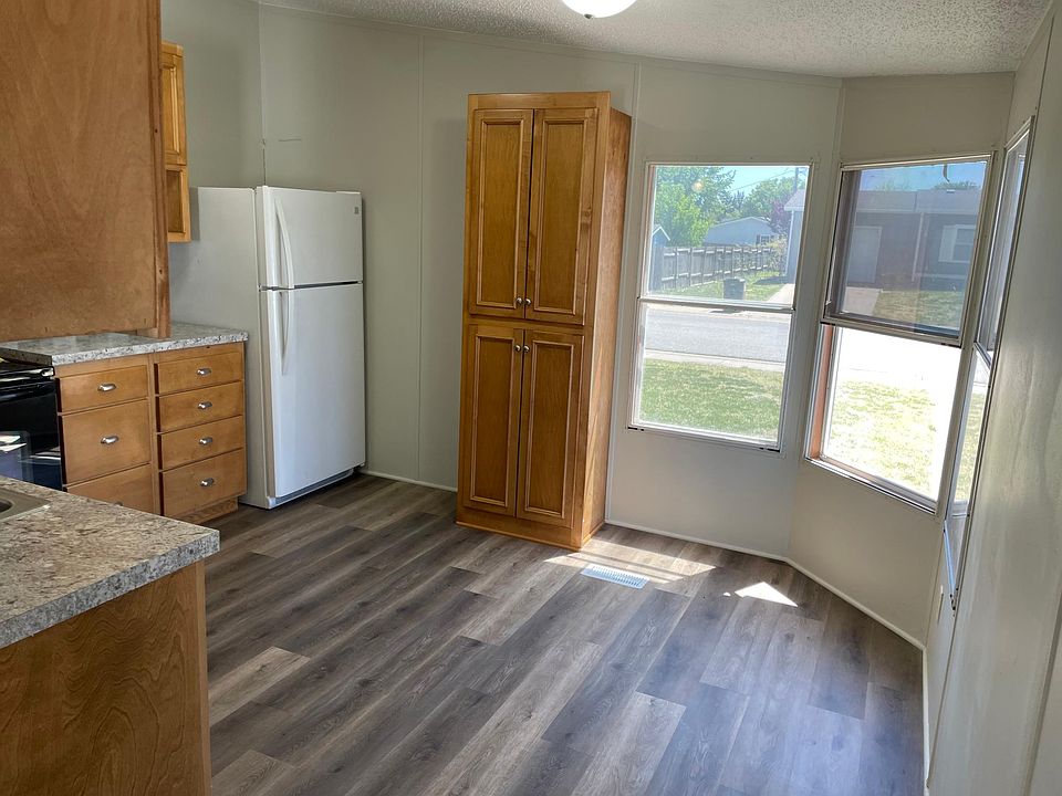 Recently updated with fresh paint and new flooring, this home offers 3 bedrooms 2 bathrooms and a 1 car garage with automatic opener. Washer/dryer hook ups. 1 year lease required. Partially fenced in back yard. New windows, and HVAC system installed and siding currently being updated and will be complete prior to new tenant moving in. All electric home. Renter pays all utilities which include water/trash/electric. Lawn care and snow removal is also renters responsibility.