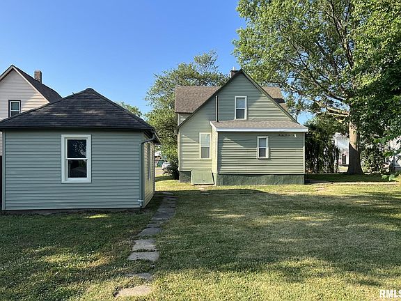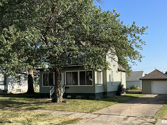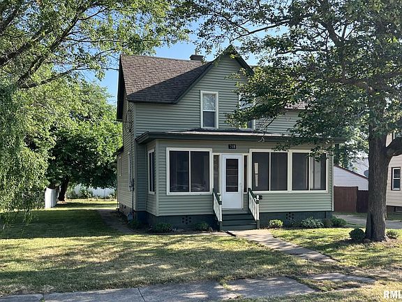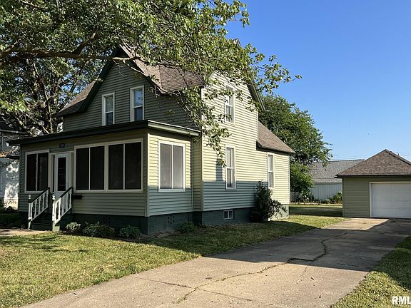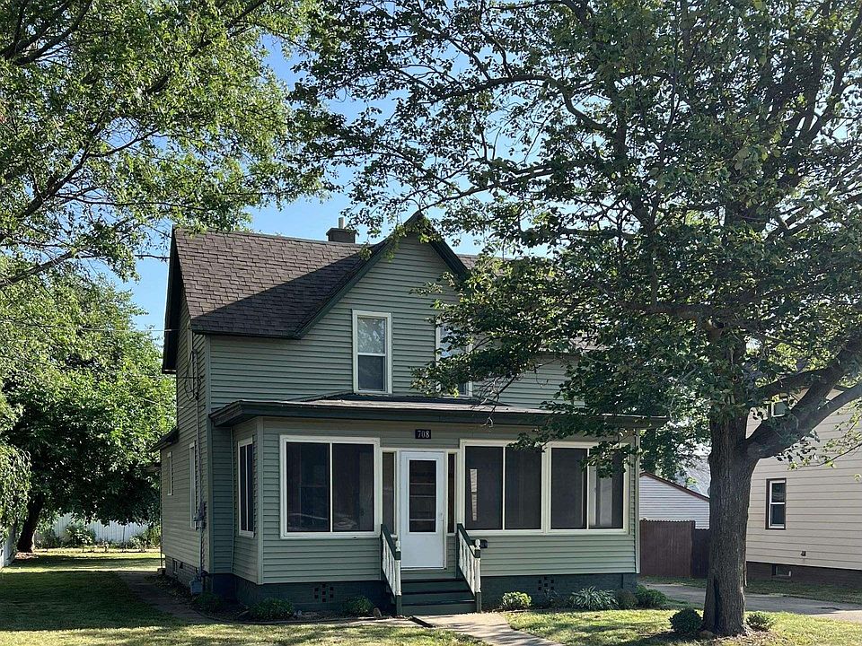 Nice 3–4-bedroom home with a 1-car detached garage. Enjoy your favorite beverage on the big enclosed front porch! The main floor has a dining room, living room, bedroom & big bathroom with a tub/shower combination. The kitchen has wood cabinets, built-in China cupboard & the appliances stay but not warranted. A small, enclosed back porch/mudroom is located off the kitchen & leads to the back yard. The second floor has 2 large bedrooms & a dressing room with built-ins.