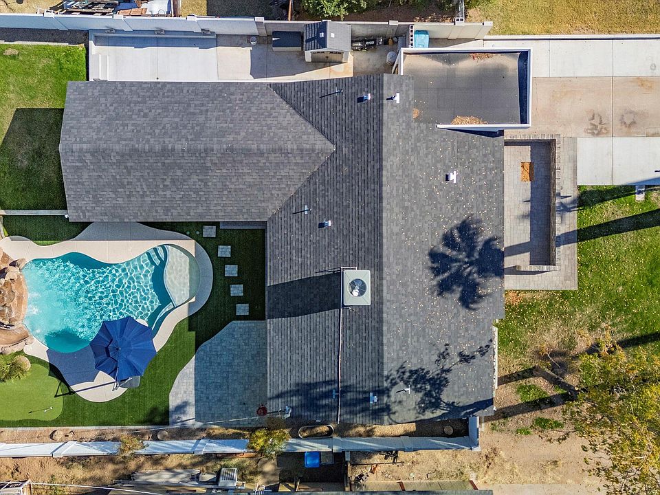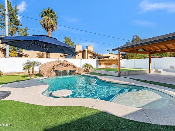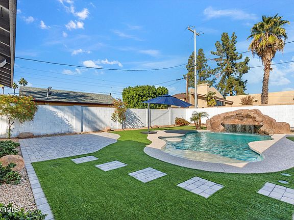 The backyard is an entertainer's dream: a sparkling pool with a waterfall grotto & slide, a 3-hole putting green, an extended patio with a Commercial Grade misting system & ceiling fan. Bedrooms have plush carpeting, no detail was overlooked in this thoughtfully designed home.