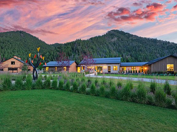 Rocking B Ranch is a breathtaking, nearly 260-acre legacy estate nestled along the tranquil East Fork River. Masterfully designed by Janet Jarvis, the property boasts a sophisticated 5,187 sq ft home, luxury equestrian barn, stocked ponds, lush pastures, mature aspen groves, abundant wildlife, and unmatched privacy—truly an exceptional mountain sanctuary. The residence features four en suite bedrooms, two powder rooms, and is anchored by a stunning French limestone fireplace. Every detail has been curated for discerning taste: reclaimed wide-plank wood flooring, clay-wash plaster walls, oak-clad structural beams, and bespoke cabinetry. Lighting is elevated to an art form, featuring sculptural fixtures by Apparatus and exquisite Murano glass chandeliers, all seamlessly integrated with state-of-the-art Lutron home automation.