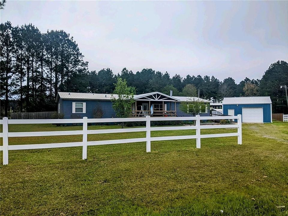 Beautiful 4 Bedroom 2 Bath Modular home on 2.3 acres of land! 2 x 6 outside walls, 3/4" plywood floors and Sheetrock walls. There are 2 carports that can be used for parking as well! This home also features a master bath with barn doors, with shower and separate tub, and a shower in the guest bathroom. This home also comes with a living room and den. Gorgeous kitchen with farm sink and barn doors to pantry. There is a storm shelter as well out back with ventilation. Home features also one car garage with work shop. This property also will come with 3 Storage buildings! Don't miss out on this beauty!