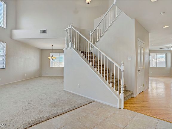 MORTGAGE SAVINGS MAY BE AVAILABLE FOR BUYERS OF THIS LISTING! It's all in the details. This stunning 2-story residence boasts 5 bedrooms & 3 full bath, including three oversized secondary bedrooms. The home features some newer carpet & tile flooring along with some laminate flooring in the family room. Ceiling fans throughout, some new interior & complete new exterior paint for a fresh feel, and a new never used dishwasher, new refrigerator and garage door opener. Entertainment center in the family room included. Step outside to a private backyard that is ready for your creativity with no neighbors to the West. The covered patio with balcony offers breathtaking views of the Las Vegas Strip, mountains & valley, perfect for enjoying sunsets & city lights. This home is clean & ready for immediate move-in. Situated within a desirable gated community, its prime location offers easy access to shopping centers, freeway access, schools, and the vibrant downtown Henderson Water Street District.