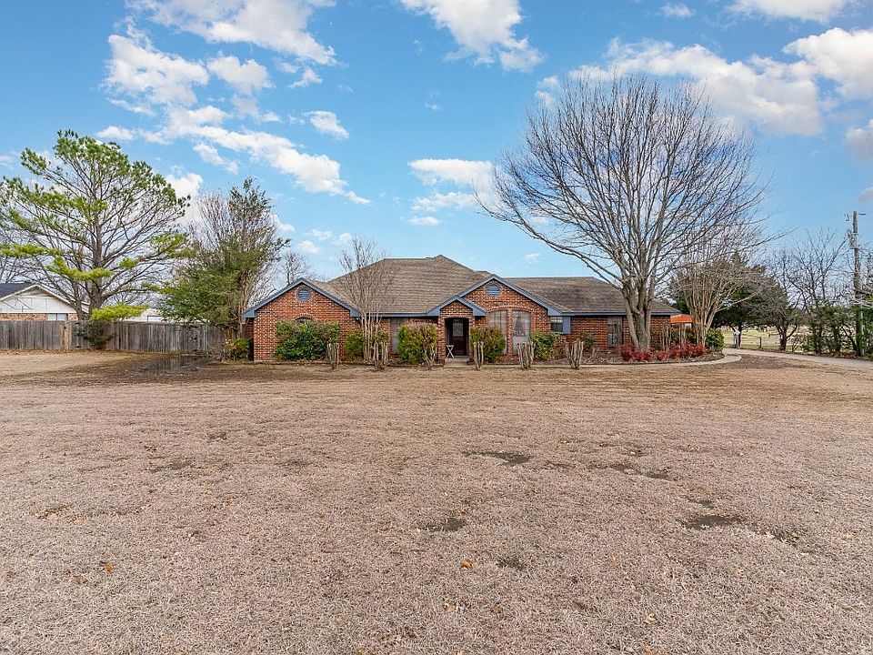 This beautiful piece of property on a quiet cul-de-sac is a welcome getaway from the business of city life, without being too far from the city! The home features a spacious living room, large eat in kitchen, with beautiful slate floors. The primary suite has plenty of room for a king sized bed and the bath features a double vanity, separate soaking tub and shower. Luxury Vinyl floors have recently been added to the primary bedroom, hall and one guest bedroom. Out back, you have two acres to explore, with a two stall horse barn, and pool for those hot Texas summers. Priced with the cash buyer in mind for a quick close!