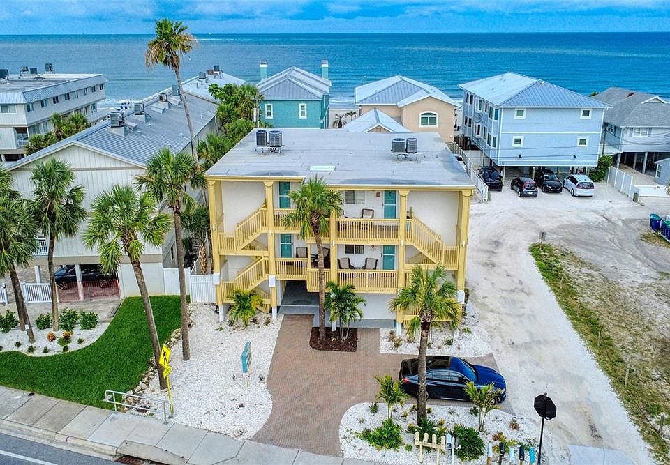 SHORT TERM RENTAL ALLOW. 1 WEEK MINIMUM, THIS WEEK IS PERFECT FOR GREAT RETURN IN YOUR INVESTMENT. Top-Floor Corner Condo with Gulf Views | Steps from the Sand Rare opportunity to own a 2BR / 1.5BA Key West-style condo with direct views of the Gulf of Mexico. Located in Sandpiper Sands, a private 4-unit building on the desirable west side of Gulf Blvd—just steps from one of the best beaches on Florida’s west coast. This southwest-facing, top-floor corner unit offers flexibility for investment (7-day rentals allowed), a full-time home, or a weekend beach escape. Highlights include: New A/C (2023) Kitchen with granite counters, wood cabinets, and stainless steel appliances In-unit LG washer & dryer Neutral color palette with ceramic tile and engineered wood flooring throughout Two private balconies to enjoy Gulf breezes and sunsets Fresh exterior paint (2022) and lush, well-kept tropical landscaping Extras that set it apart: More outdoor storage than most beach condos—two private storage bins Under-building parking + paver apron for easy loading/unloading Common patio with grill area Walkable to local restaurants and nightlife Trolley stop right out front for easy access up and down the coast This condo offers location, views, and value that are rarely found together. Don’t wait—schedule your showing today before it’s gone.