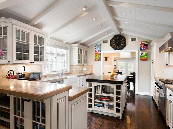 With an ideal location adjacent to the Palisades Village, this storybook Cape Cod is exactly what you've been waiting for! The gracious public rooms provide a perfect setting for both formal entertaining and a causal lifestyle. There are wide-planked Hickory floors throughout and vaulted ceilings in the living room, kitchen, family room and master. The kitchen includes a center island, breakfast bar, Viking appliances, SubZero and separate wine refrigerator. The family room has a wood burning fireplace and office area. The master suite includes a walk-in closet and sumptuous bath. One guest bedroom is on the lower level. French doors from the family room and master open to a grassy backyard and patio, perfect for an outdoor party. A flagstone stairway leads to an upper tier which includes an additional play area and a beautiful spa and patio. On a clear day, there is a peek of the ocean and always expansive mountain views. Close to the beach and hiking trails. Sonos. AC. Security.