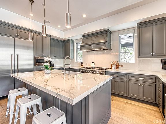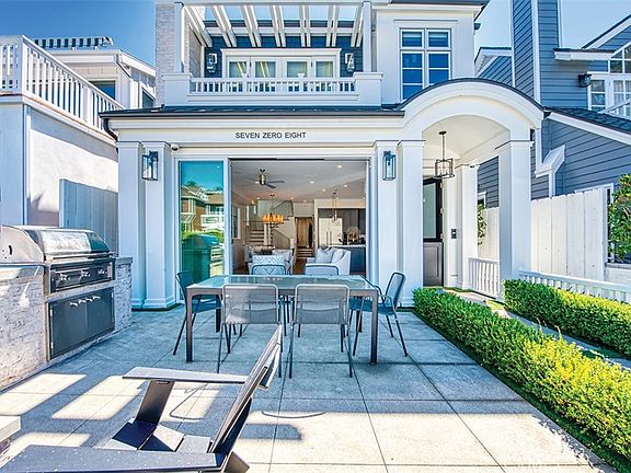 The indoor-outdoor connection is seamless, thanks to magnificent LaCantina doors that open to reveal your beautiful front patio which features a custom fire pit and a built-in Sedona outdoor grill, creating an ideal setting for al fresco dining and relaxation. Ascend to your own rooftop deck and be captivated by views of Catalina Island—the perfect backdrop for sunset cocktails and hosting guests.
