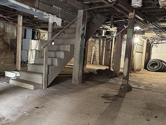 The house needs to be completely repaired and has 4 apartments with one room each. A very large garage in the basement of the house. A rear yard with parking options.