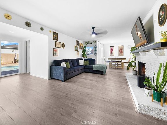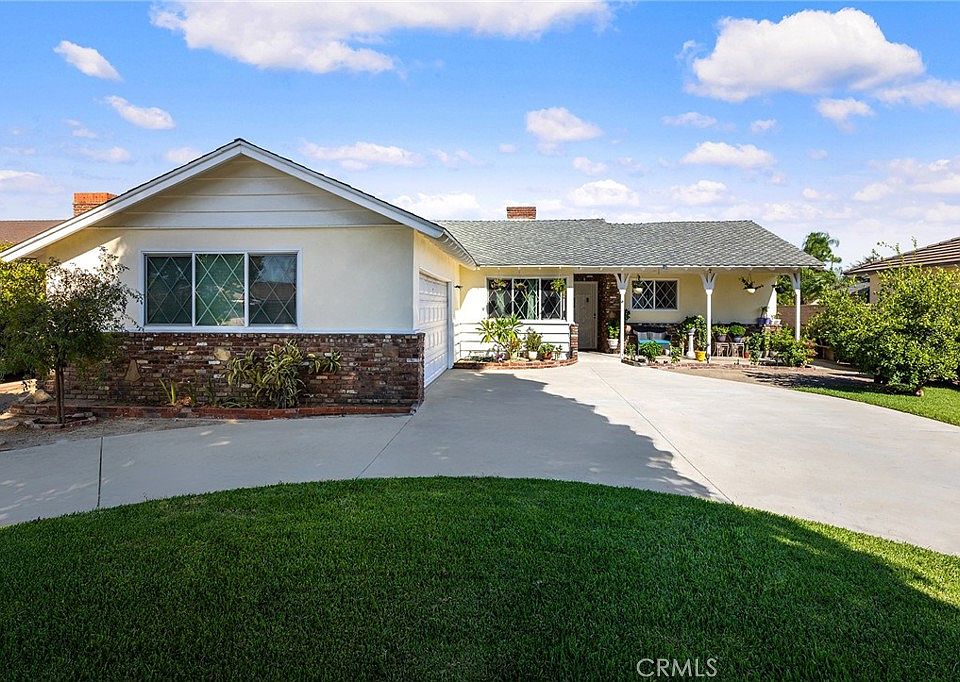 Enjoy charming curb appeal with a circular driveway, newer roof, front porch, and dual-pane windows. The oversized backyard is a true retreat, featuring a sparkling pool, fruit trees, and ample patio space—perfect for entertaining or relaxing in privacy.