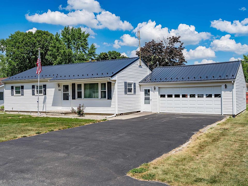 Come enjoy this 3 bedroom ranch in Ossian. Recent updates include a new metal roof and new vinyl siding. The property offers an open concept to the kitchen as you enter from the front door. The main level offers original hard wood floors that are also under all 3 bedrooms. There has also been a walk in tile shower added to bathroom 2 and the laundry room making it 2 full baths. All appliances will remain with the property including washer & dryer. The living room is connected to the kitchen with a breakfast bar. Oversized garage that can have many uses. The backyard offers a large patio with a newer shed for extra storage. The landscape has rock for less maintenance needed in the coming years. Gas grill, swing and bed stay with the property. Stop by today!