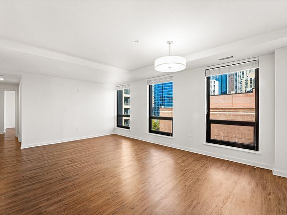 Welcome to Chateau on Wells. Stunning spacious 3 bed 3 bath unit features 9' ceilings, Samsung appliances, full size stackable washer & dryer, Grohe fixtures, spa inspired shower fixtures, plank flooring, porcelain tile in bathrooms, HUGE 700 SF balconies and separate dining area. Building offers landscaped roof deck, fire pit, heated garage parking, bike storage, and private secured entrance. Prime River North location, easy walking distance to the Brown line at Chicago. Close to Whole Foods, CVS, and all of the shopping, restaurants, and attractions of Michigan Avenue! Parking available $300/mo