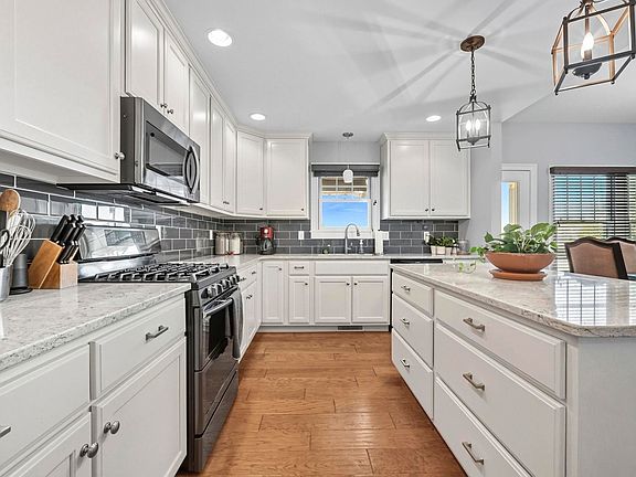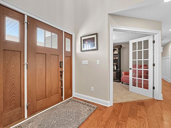Discover this gorgeous Craftsman-style home in Tuscany, situated on a peaceful pond lot with stunning water views. Perfect for everyday living and entertaining, this home features a chef’s kitchen with quartz countertops, subway tile backsplash, an island with bar seating, and soft-close custom cabinets. The wide-plank hardwood floors add warmth, while the butler’s pantry has a built-in China cabinet. The spacious great room boasts a stone fireplace and detailed ceiling, creating a cozy, inviting atmosphere. A versatile den or formal dining room with French doors provides additional living options. The main-level primary suite offers a tray ceiling and a spa-like bath with double vanities, a tiled walk-in shower, and a large walk-in closet. Upstairs, you'll find three generously sized bedrooms and a full bath with double vanities and a makeup area. The finished basement, complete with a half bath, provides ample space for entertaining, hobbies, or a home gym. Plus, enjoy a three-car garage and a laundry chute for added convenience. The gorgeous outdoor living area features stamped concrete patio and a pergola on the deck, invisible fence for your dogs and an in ground irrigation system for the best lawn in the neighborhood. Do not wait, schedule your showing now!