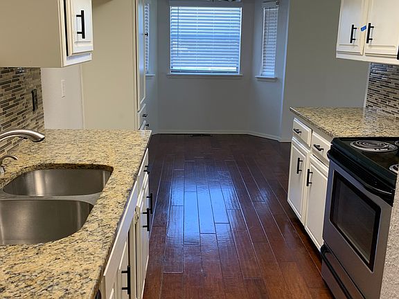 3BD 2BA 1308 sq ft 25x30 ft Shop Storm Shelter in 2 car garage in cul de sac Beautiful hardwood floors in living room, kitchen, dining Attractive ceramic tile in entry, bathrooms, laundry Polished concrete in bedrooms, New greige paint and white trim though out home Granite counter tops, mosaic backsplash, stainless steel sink, faucet, microwave, dishwasher, electric stove, garbage disposal Vaulted ceilings & brick fireplace with book shelves & bay window in dining, 2 inch blinds & fans throughout home Very large backyard fully fenced with gate access to insulated & air conditioned metal shop with 220 wiring Perfect for self employed or car enthusiast Nice quiet neighborhood, Moore schools, close to shopping, dining and the Station Pets by approval $350 nonrefundable per pet Credit and background check required with $35 application fee for all applicants No Smoking