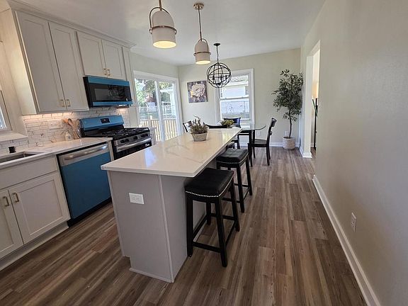 Refinished hardwood upstairsNew garage doorsNew guttersNew furnaceBrand new kitchenLarge backyardNew cabinets