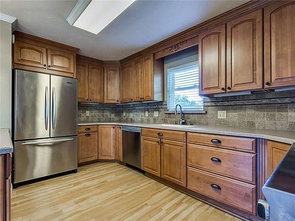 You will be pleasantly surprised when you see the homes amazing kitchen with its 6 burner stove and stainless steel refrigerator and a brand new dishwasher and disposal. The cabinets have pull out drawers with lazy susan areas and counter top bar eating. The main sitting area has hardwood floors with double doors that lead to a deck area that would be great for entertaining family and friends and it overlooks a large backyard. Updated also is the main bathroom and the 3 bedrooms have all been painted. The bonus room can either be used as an additional bedroom, 2nd living area or possible office since the room leads to the outside. The utility area is also inside. The roof was replaced in 2019 with high impact shingles. Seller is very motivated since she originally purchased for family and they moved away. You must see inside so call for a showing.