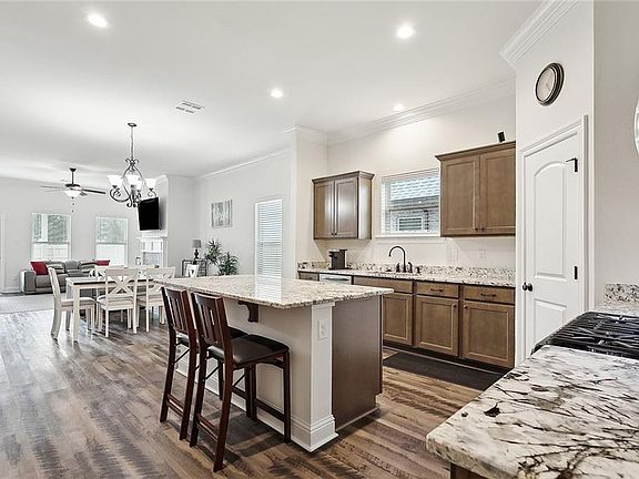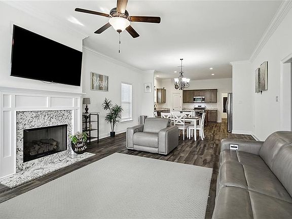 This beautiful 4 bedroom / 3 bath home is less than 5 years young and loaded with tons of charm! Located in the desirable Ashton Parc Subdivision, this beauty features bright living / dining areas and a delightful eat-in kitchen with granite countertops, Stainless-Steel Appliances, and a walk in pantry. The thoughtful layout of this home is designed for a family seeking both comfort and functionality. The open living room provides plenty of natural lighting and a gas fireplace. The primary suite has a spacious bedroom with a well appointed ensuite bathroom, complete with soaker bathtub and separate shower. There are also 3 additional bedrooms including another bedroom with an ensuite bath. Other features include gas tankless water heater, generous two car garage, newly fenced in back yard, storage shed and located in preferred flood zone - X. Schedule your showing today!