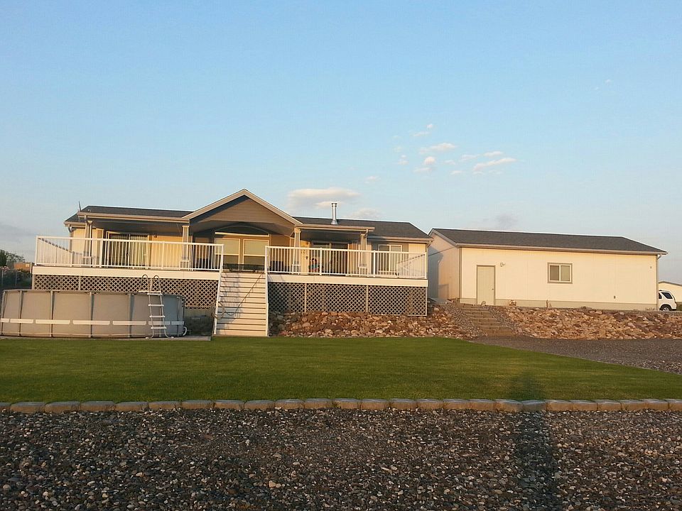 Unique Lake View property at North End of Desert Aire. Huge 3/4 acre lot with views of Lake and Mountains. Elevated Home with 10 X 38 desk for spectacular Views of Sunsets.Above Ground pool w large manicured lawn for play. Just steps from New walking and biking trail along Priest Rapids Lake.Oversized 2 car garge deep enough for you boat and toys.3 Bedroom 2 Bath, gas fireplace, vaulted ceilings, New Marina and Park. New Community Swimming pool opens May 2015.18 hole PGA Golf course, driving range and Tennis Courts. 300+ days of Fun in the Sun.