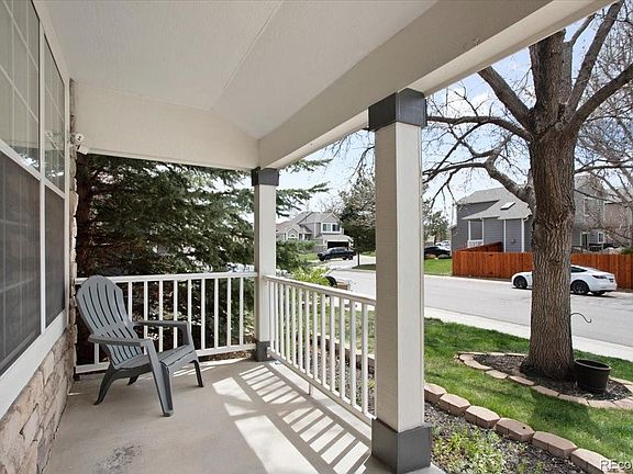 Welcome to this beautifully maintained 4-bedroom, 2.5-bath home. An open floor plan, filled with natural light, is perfect for both relaxing and entertaining. Step onto the back deck to enjoy serene views of Mitchell Gulch park and open spaces—ideal for BBQs or unwinding after a long day. The spacious kitchen, featuring a large island, granite countertops, stainless steel appliances, a gas cooktop, a refrigerator, a pantry, and built-in seating in the nook. The adjoining family room, complete with a gas fireplace and built-in cabinetry, offers a cozy space that overlooks the open space beyond. Convenience meets functionality with a main-floor laundry/mudroom, providing easy access to the garage for hassle-free grocery unloading. Upstairs you’ll find four generously sized bedrooms, a linen closet, and two full baths. The primary suite incudes a spa-like five-piece ensuite with a garden tub, dual vanities, a walk-in tiled shower, and an oversized walk-in closet with built-ins. Additional features include a charming front porch, central air conditioning, and a spacious back deck. Enjoy community amenities such as walking trails, a pool, tennis courts, parks, and top-rated schools—all with low HOA fees.
