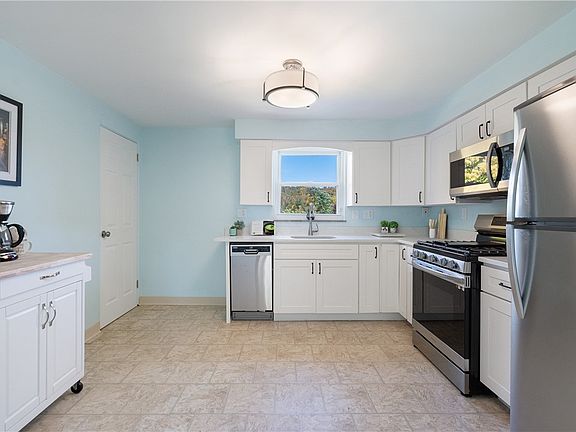HOW WOULD YOU LIKE A BRAND-NEW KITCHEN TO GO WITH YOUR BEAUTIFUL BRICK HOME IN A PEACEFUL NEIGHBORHOOD? Stunning eat-in sized kitchen with white cabinetry accented by stainless appliances and quartz countertops. Steps away is the formal dining room w/large picture window. This space flows openly to the huge living room. All new carpet throughout but you might want to expose the hardwood floors. The bedrooms are spacious with generous closet space. The ceramic hall bath is nicely updated. The walk-out lower level is wide open with high ceilings just waiting to be finished. It even has a deluxe Pittsburgh Potty. You'll enjoy the peaceful views of the level yard from your covered patio. Tuck your car in the garage or take advantage of the extra off-street parking. Easy commute to Oakland, Pittsburgh and Monroeville. Multiple shopping & dining options nearby.