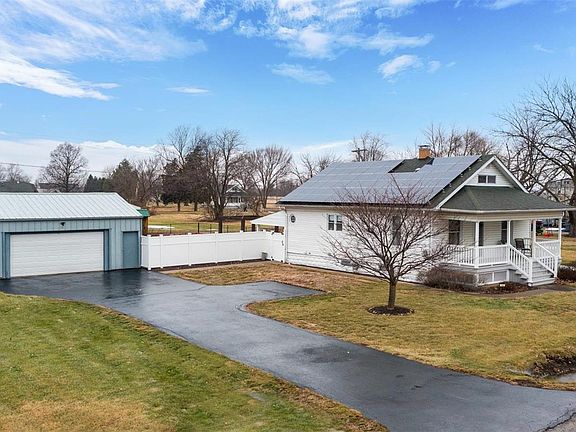 This beautifully renovated 3-bedroom home is a spotless gem, ready for you to move right in. Enjoy low utilities with the added benefit of solar energy! Featuring 3 large bedrooms and bamboo flooring mixed with luxury vinyl plank, it blends modern upgrades with modern comfort. The eat in kitchen boasts ample cabinet space complete with pull out shelving. All the appliances stay, including both sets of washer/dryers. The bedrooms have large closets, perfect for extra storage. The unfinished basement offers even more storage space. The spacious backyard and back patio are perfect for outdoor gatherings or relaxation. Additionally there is an oversized detached 2-car garage/outbuilding with endless possibilities. Don't miss out on this charming, meticulously kept beauty. First time homebuyers are welcome. Make your appointment today!