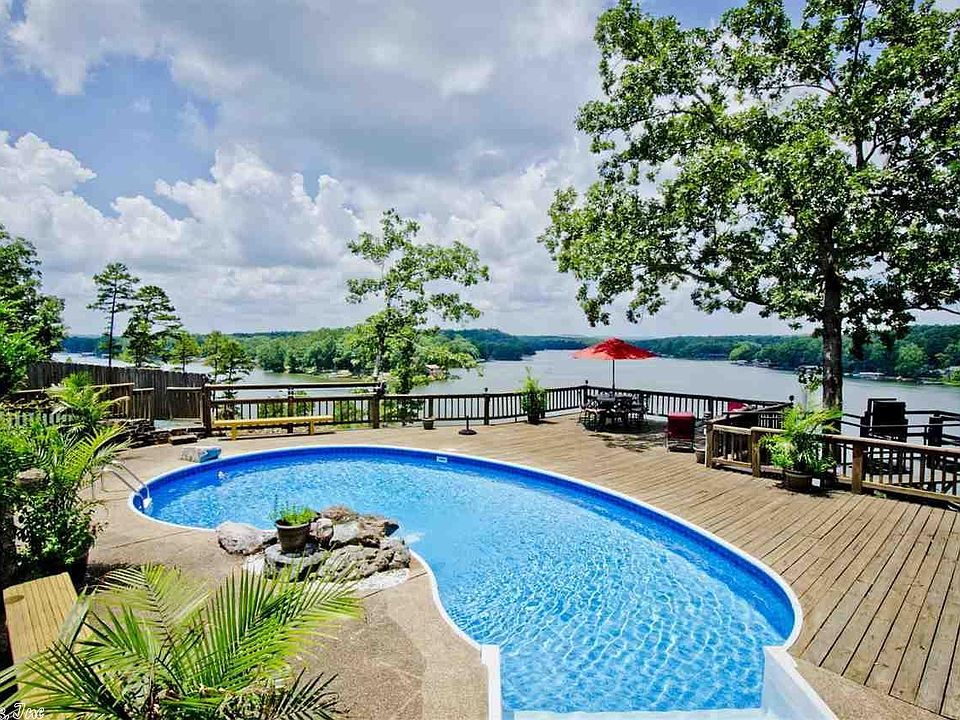 Unbelievable views!! at this Beautiful 4Br. 3.5Ba. Cyress home w/155 ft. of deep water Lake Hamilton frontage w/tram for easy access. Features include double covered boat slip w/lift, heated inground pool w/waterfall, hot tub, firepit,outdoor kit.,w/grill, sink and 2-bars, shop (20x20) w/ A/C & utility sink. Updates include granite counter tops, updated baths, hardwood flooring, roof and hot water heater. Large fenced back yard. In Lake Hamilton Schools.