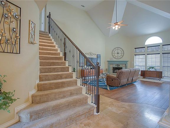 Fantastic 2-story in Murphy, TX! 5 beds, 4 full baths, large formal living with high vaulted ceilings, tile and wood floors in downstairs living areas. Open island kitchen with gas cooktop, butlers pantry, and stainless steel appliances. 3 living areas, split bedrooms upstairs, master suite down stairs with walkin closets, garden tub, separate shower, and dual sinks. Lovely blue pearl granite in the kitchen. Large covered backyard patio. New roof, new HVAC, water heater 1 year old. Home is pre-inspected for the discerning buyer. Don't miss out on this great home in Maxwell Creek!