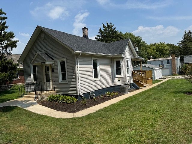 Beautiful cared for freshly painted home-sharp quality hardwood flooring. Numerous recent improvements in the last few years: Furnace, central air warranty expires 2028 , Like new 2 car garage built 2013 , hot water heater warranty expires 2026, and roof new 2020. Kitchen and bath remodeled 2019 Popular open design with the spacious living room being open to the large dining room, Nice kitchen off dining room with new refrigerator and range/ oven. Very nice deck off kitchen. Deck looks out to side and backyard. 3 bedrooms and partial basement. In addition to the 2 car garage the backyard has a large extra parking area next to the garage-room for additional cars or camper/boat? Pictures show home when it was furnished and the additional pictures without furniture help show the rich hardwood flooring throughout the home.