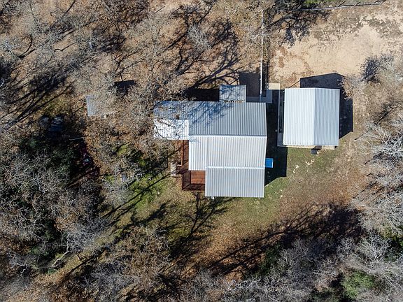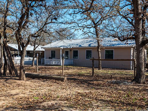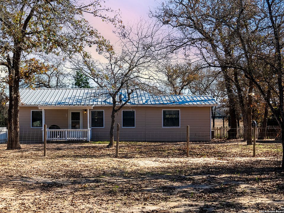 Escape to your own country retreat on 10.6 unrestricted acres, beautifully wooded for privacy and featuring a gated entry. This farmhouse offers a perfect blend of charm and functionality with two bedrooms, two bathrooms, and a large second living area that can serve as a third bedroom, home office, or cozy den. The gourmet kitchen boasts granite countertops, a crushed granite sink, a prep island, and ample storage, while a separate dining room and an inside laundry room add convenience. Recent upgrades include a new aerobic septic system, a new bladder in the water well, a water heater, and tin skirting around the base of the house. Electricity has been added to the outdoor shed, and a new deck was built on the back of the house, providing a relaxing spot to enjoy stunning views of the acreage. Energy-efficient features include a newer metal roof, double-pane windows, a reverse osmosis system, water softener, and UV filtration. Outside, the property offers a covered carport with a concrete floor and additional storage, multiple sheds and outbuildings. Located just off I-10 near Buc-ee's, this serene property provides easy access to Austin, San Marcos, Seguin, and nearby toll roads. Bring your horses, toys, and dreams to this peaceful slice of Texas paradise. Tractor and implements are negotiable. Schedule your private tour today!