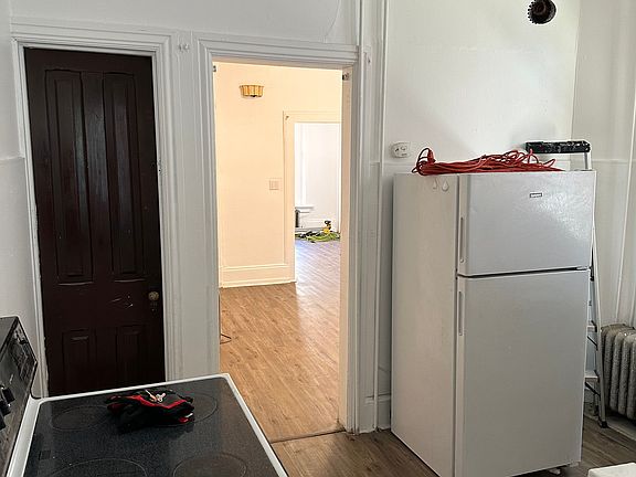 Two bedrooms, one bathroom, a kitchen, and a large middle room. Front and side entrances. Electric and oil are not included. Water and trash included. Not accepting Section 8. Background check and proof of employment. No pets. Street parking.