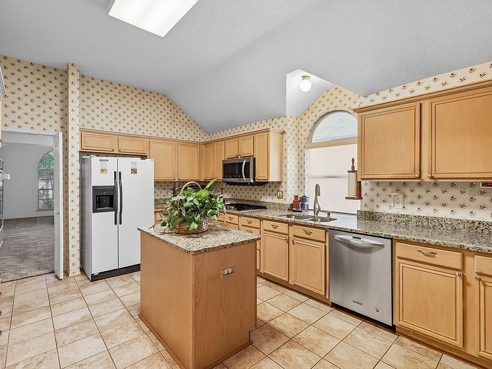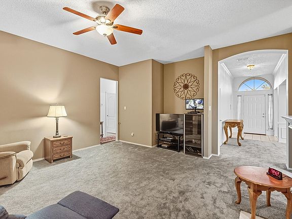This feature-packed, charming home offers a formal living and dining room, a cozy den with a fireplace, a galley-style kitchen with a breakfast area, four spacious bedrooms, two full bathrooms, a 15'x24' spa room, a 14'x30' game room, a covered patio, and an attached 2-car garage. The landscaped yard includes raised beds, AstroTurf, and low-maintenance, rare plants that make upkeep easy. The extended driveway leads to a well-lit, air-conditioned 2-car garage with extra storage in the back and above. The kitchen features custom hard-rock maple cabinets, granite countertops, a matching island, pantry, and stainless steel undermount sink. Appliances include a side-by-side fridge, dishwasher, built-in oven and microwave, and gas cooktop. The primary suite has a walk-in closet and a spacious bathroom with a dual-sink vanity, large lighted mirror, walk-in shower, and a custom Jacuzzi tub. The closet includes built-in oak cabinets, hanger rods, and shelving for great organization. Relax by the fireplace in the den or enjoy the 280-sq ft spa room with a Harmony Spa, or the 340-sq ft game room—great for entertaining. Additional features include a privacy-fenced backyard, an ADT-monitored alarm system, and two storage buildings with electricity, workbenches and tables.