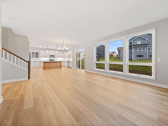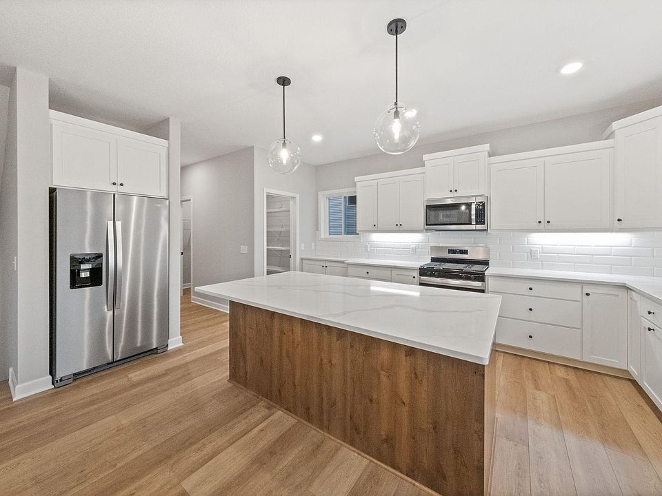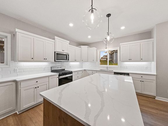 Welcome to the Payton XL plan by OneTenTen Homes, a beautifully crafted two-story home offering five spacious bedrooms, four bathrooms, and a three-car garage. The main level features a sunlit kitchen with a large center island, walk-in pantry, and an office. The primary bedroom, with its vaulted ceiling, includes an ensuite bathroom with double sinks and a walk-in shower. The finished walkout lower level adds versatile living space. Elegant painted millwork, rich stained wood, oversized windows, and custom cabinets with quartz countertops showcase the home's exceptional quality and attention to detail.