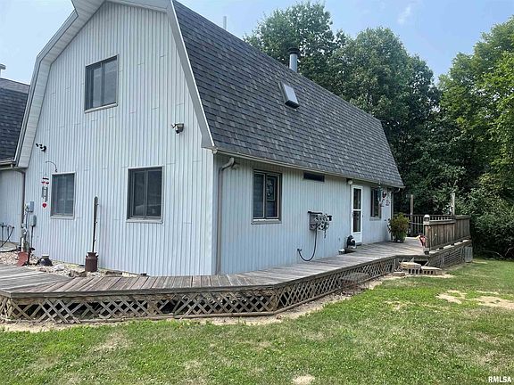 Unique property-35 acres-country living-close to Macomb and Colchester. Lots of nature. The main floor has an open floor plan for the kitchen, dining room and living room. Also on the main floor is a bedroom, office, bathroom and laundry area. The home has 2 upper bedrooms with full baths. A nice wood deck surrounds most of the house. The attached garage has ample storage. The detached garage can hold 2 cars and has a 200 square feet efficiency apartment with full bath. This too has ample storage above and around the garage! Two sheds are included. 13 acres tillable are in a CRP (conservative reserve program) which pays $2,500 annually for the next 5 years. Concrete pad at the front of the property that has electricity, water and sewer ready for RV's or mobile home.