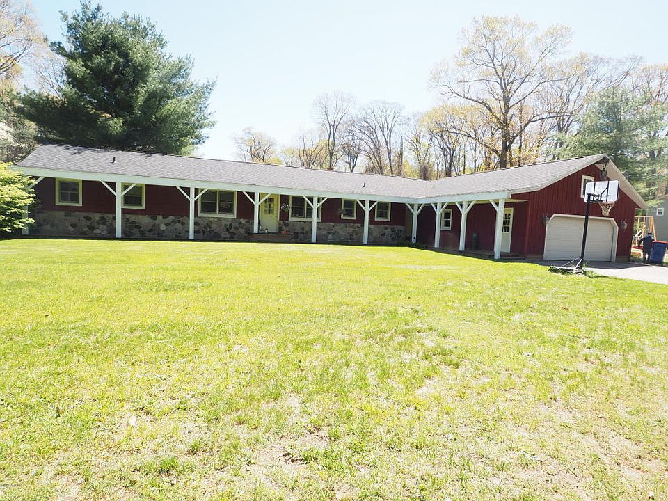 SPRAWLING RANCH STYLE HOME IN FRUITPORT SCHOOL DISTRICT! Featuring over 2100 finished sq ft of living space, this 4 bedroom, 2 bath home has large rooms throughout, vaulted ceilings, gorgeous woodwork, main floor laundry, spacious kitchen with snack bar, and more! Newer shingles (2015), oversized attached 2 car garage, new 50 gallon water heater and 20 x 30 outbuilding. Relax on hot summer days in the in ground pool. Lots of character in this fantastic home! Call today for your personal sho wing! Buyer to verify all information.