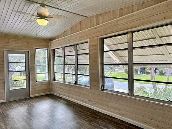 Enjoy the Florida lifestyle! Private in ground salt water pool and tiki bar in your own backyard! This community has NO age restrictions and NO rental restrictions! You own the land!! Beautifully maintained home inside and out! Open floor plan with large cook island in kitchen. Renovated with newer cabinets and stainless appliances. Both bathrooms have been updated. New AC 2019 and metal roof over enclosed Florida room and screened in porch. Large laundry room. Ridgeway community is minutes to beaches of Jupiter Island, Intracoastal waterway, Boat ramp, shopping and restaurants. Pets are welcomed. Voluntary fee of $300 per year if you want to join the community pool and clubhouse, but not mandatory.