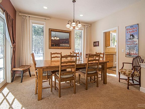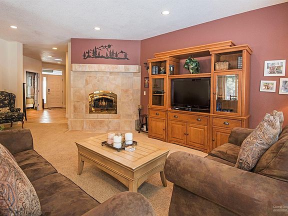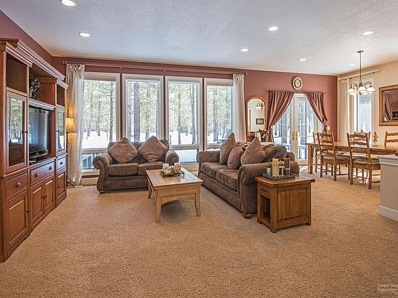 Deschutes National Forest across the street from this one level home located near the top of the sled hill, the signature 14th hole of the Big Meadow Golf Course. Two master suits on the ground floor. Warm in the winter with a wood burning fireplace in the great room and cool in the smmer with a one year old HVAC system. Third garage and closet in master for lockable storage. Bike path just across the street. Come to the Ranch and check it out. Rental history available.
