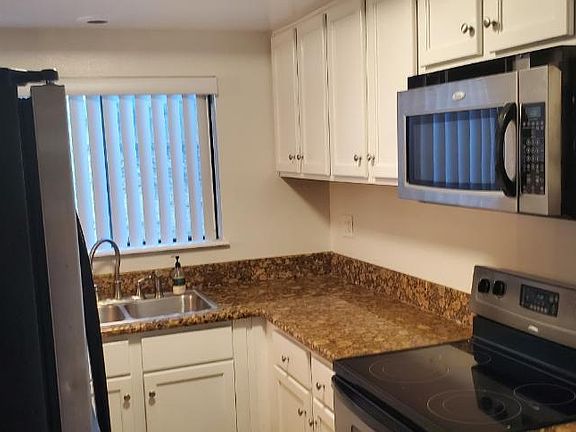 The home offers a warm Mediterranean-inspired style. Cozy up by the inviting fireplace, enjoy a quiet evening with a glass of wine, or celebrate the holidays with loved ones. The kitchen comes equipped with a refrigerator, stove, and microwave, plus beautiful granite countertops and a comfortable breakfast bar.