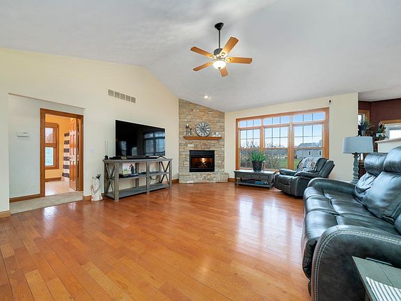 Dreaming of the Golfing Lifestyle Right Outside Your Own Door? Look no further! This beautifully crafted home in serene Newburgh Village Golf Club is waiting for you!! The split bedroom floor plan ranch including a dedicated home office offers effortless single-level living, stunning views, and a peaceful setting that feels worlds away—yet still close to everything you need. Step inside to find volume ceilings for lots of natural light yet with a cozy feel. The living room gas fireplace gives that welcoming feeling to the whole house. The well-appointed kitchen offers loads of cabinetry and counterspace for all your gatherings. The separate dining room is perfect for special occasions as well as everyday meals. Owners have loved everything about this home since building it. The home office is perfect for working remotely. The lower level is finished with a 4th bedroom, 3rd full bath and a spacious family room. The large deck looks over the 9th tee and offers a great place to unwind whether you're sipping morning coffee, catching the sunsets or watching golfers go by. And how about the 4 car garage... WOW! You'll have room for 3 cars plus your own golf cart! You will absolutely love hosting friends in this home which delivers the best of quiet, easy living. Create your own sense of neighborhood here—where the landscape is open, the surroundings are beautiful, and the lifestyle is all your own. Lots of dining and shopping choices just 5 minutes away plus easy interstate access. Belvidere Schools.