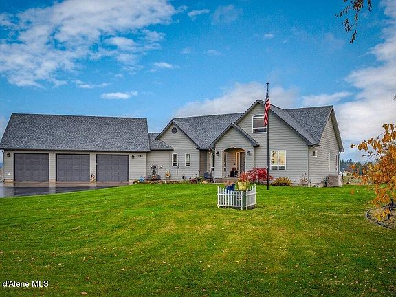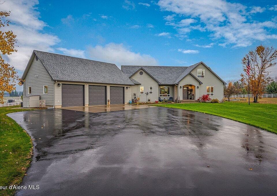 Rare opportunity to have acreage in town! Stunning 4 bed, 3 bath home with 3048 sq ft situated on over 4 private, level acres situated close to both Post Falls and Coeur d'Alene amenities. The main level is beautifully updated with large windows throughout, ensuring an abundance of natural light. Relax or entertain on the expansive, newer deck overlooking your serene acreage. A massive 30x40 shop is ready for all your toys, hobbies, or storage needs. Features also include a SunSetter shade over the deck, water softener, active radon mitigation system, bottom up-top down blinds, 220 V electric in both garage and shop, loft above primary bedroom and the following newer items: furnace/AC, exterior paint, lighting, kitchen appliances, upstairs interior paint and flooring, and much more! Experience the ideal North Idaho property—space, updates, privacy, and an incredible shop.