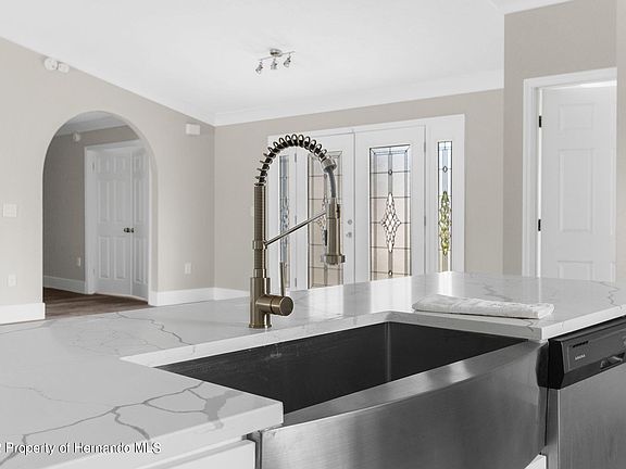COMPLETELY REMODELED!!! BRAND BEW ROOF!!! MOVE-IN READY!! 4 BEDROOMS + 3 BATHROOMS + 2 CAR GARAGE on a 1/2 ACRE CORNER LOT with NO HOA! GREAT LOCATION close to HWY 50 and US 19!! LARGE home with 2,705 sq ft of living space; 3,955 total! Spacious, high ceiling, light and bright open floor plan!! Almost everything is NEW!! Super location in Royal Highlands, but close to town!! Oversized corner lot over a 1/2 acre! Gorgeous new kitchen with quartz waterfall countertops and real wood white shaker kitchen countertops, gas cooktop and stainless steel hood range, modern-island kitchen with large island breakfast bar, stainless steel farmhouse sink, built-in oven and microwave, stainless steel refrigerator, all new plumbing and fixtures, new lighting fixtures. Formal dining room. Brick exterior with french-country farmhouse touch! Large grand entry with double doors and brick paver parking for guests overing extra parking spaces! Side entry 2-car garage. Master bedroom is spacious with stunning master ensuite bathroom! Dual sinks, stunning EXTRA large master shower for 2...tiled with large impressive porcelain tile slabs! Dual show heads! Modern soaking tub! Large walk-in closet and sliders to the large back lanai! Tray ceiling. The other bedrooms are very large offering lots of space to everyone in the family! Second bathroom has real wood cabinets, quartz countertops, tub/shower combo. New luxury vinyl plank flooring thorough out the home with and new carpet in the bedrooms.Back lanai is extra large (37 x 12) with 3rd bathroom access. Crown molding! New modern finishes everywhere! A MUST SEE! 10 minutes to the sunset at Pine Island, minutes for Weeki Wachee Spring State Park, Buccaneer Bay Waterpark and kayaking down the crystal clear river! Minutes to shopping, restaurants, hospital, movies and more!! Minutes to the Suncoast Parkway for quick and easy access to Tampa for work and play!! 40 minutes to Tampa International Airport! 1 hour+ to some of the TOP 10 US BEACHES! Everything is new and beautiful, ready for its new family to just move in and in a great location and zoned for the county's newest schools!!