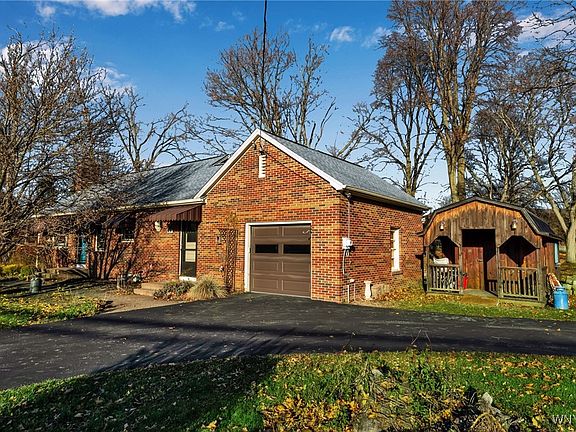 Charming 2-bedroom, 1-bath brick ranch on nearly 2 acres featuring a peaceful bubbling brook bordering the left side, expansive backyard, and an inviting back patio. This home offers an open floor plan with a bright living room, cozy fireplace, updated flooring, and an eat-in kitchen with quality cabinetry. The first-floor bathroom includes an accessible shower for easy one-floor living. The walk-up attic provides a bonus storage room plus a full attic for additional space, and the property also includes a full basement, attached garage, and detached shed. Additional updates include mini-split air conditioning on the first floor, an updated boiler, and a permanent generator. Conveniently located just off the 219 with easy access to Buffalo and close to Boston. Don’t miss this charming property with space, convenience, and natural beauty all in one.