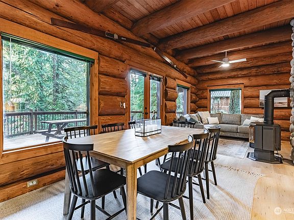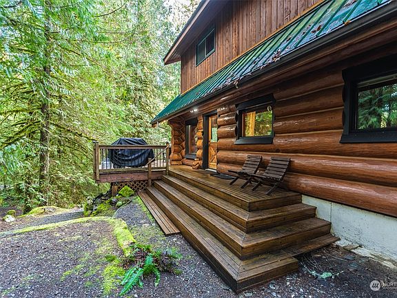 Discover Rustic Luxury in this Mountain Retreat! Meticulously maintained 'True Log Homes' log cabin in Glacier's Snowline gated community. Ideal personal getaway and turn-key short term rental investment, fully furnished! Three bed septic w/2 proper bedrooms + sleeping loft + multiple sleeping spaces for guests. Space for 3rd bedroom on main. Recent updates include NEW: flooring throughout, hot tub + gazebo, generator, SS refrigerator & range, couches (two w/ pull-out beds), electric wall space heaters, propane tank & ceiling fans. Complete w/ dry sauna upstairs. Huge deck w/views of Mt. Baker, w/heater is ideal for outdoor entertainment. Snowline amenities: pool, clubhouse, play/sports area, tennis courts, & full time manager/security.