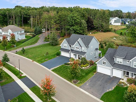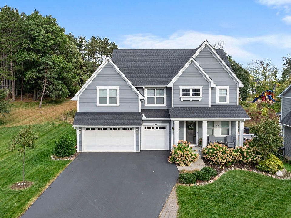 Welcome to this beautiful home in Eastbrooke neighborhood in Cottage Grove, built by Gonyea/Stonegate Builders. This four-bedroom, three-bath residence features an open floor plan designed for modern living and entertaining, with luxury vinyl plank (LVP) flooring throughout the main level. The gourmet kitchen is a chef’s dream, boasting quartz countertops, a large center island, stainless steel appliances, and a built-in wine and beverage fridge in the bar area, seamlessly flowing into a spacious living area anchored by a shiplap fireplace. A main-floor office provides a perfect space for working from home or studying.
